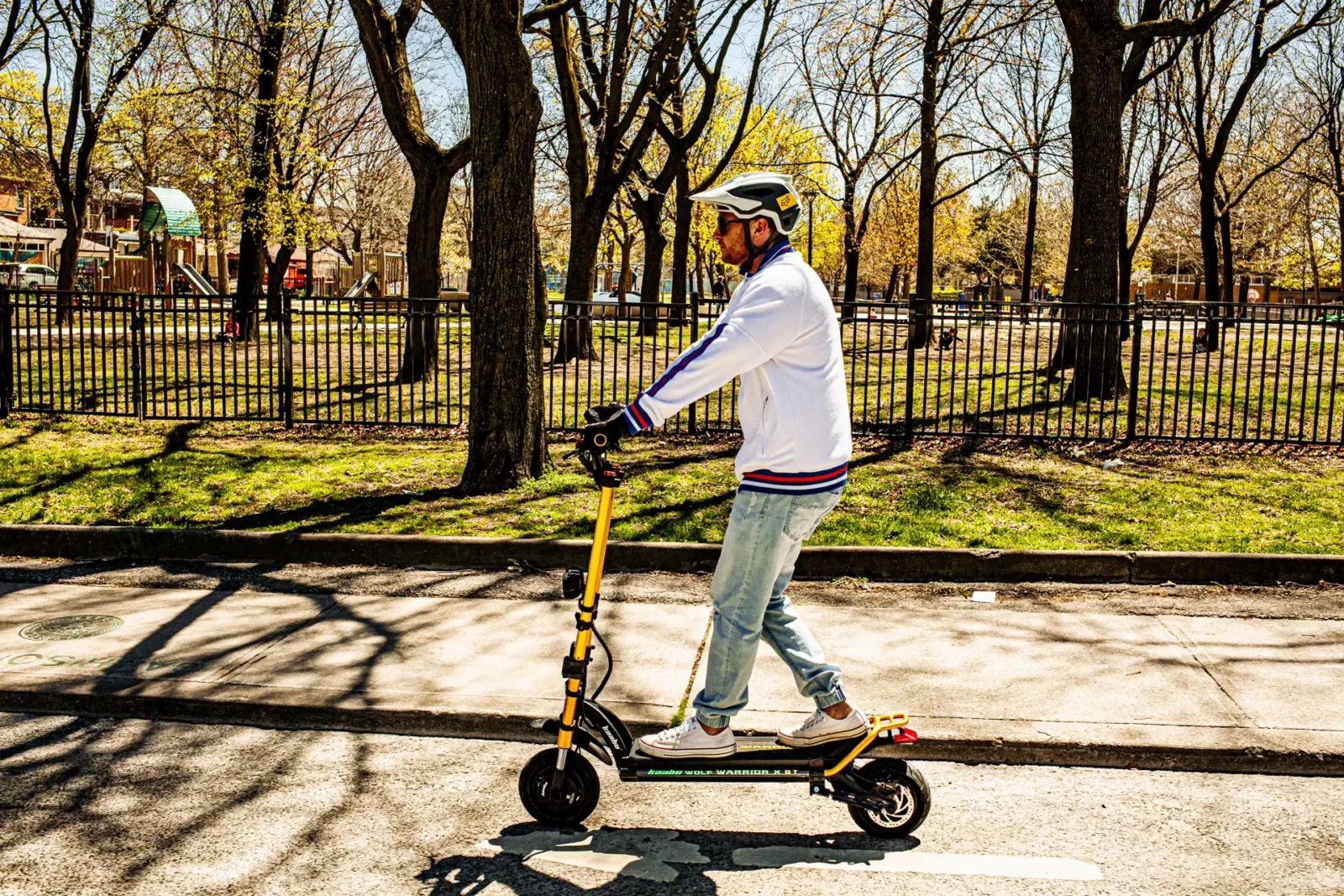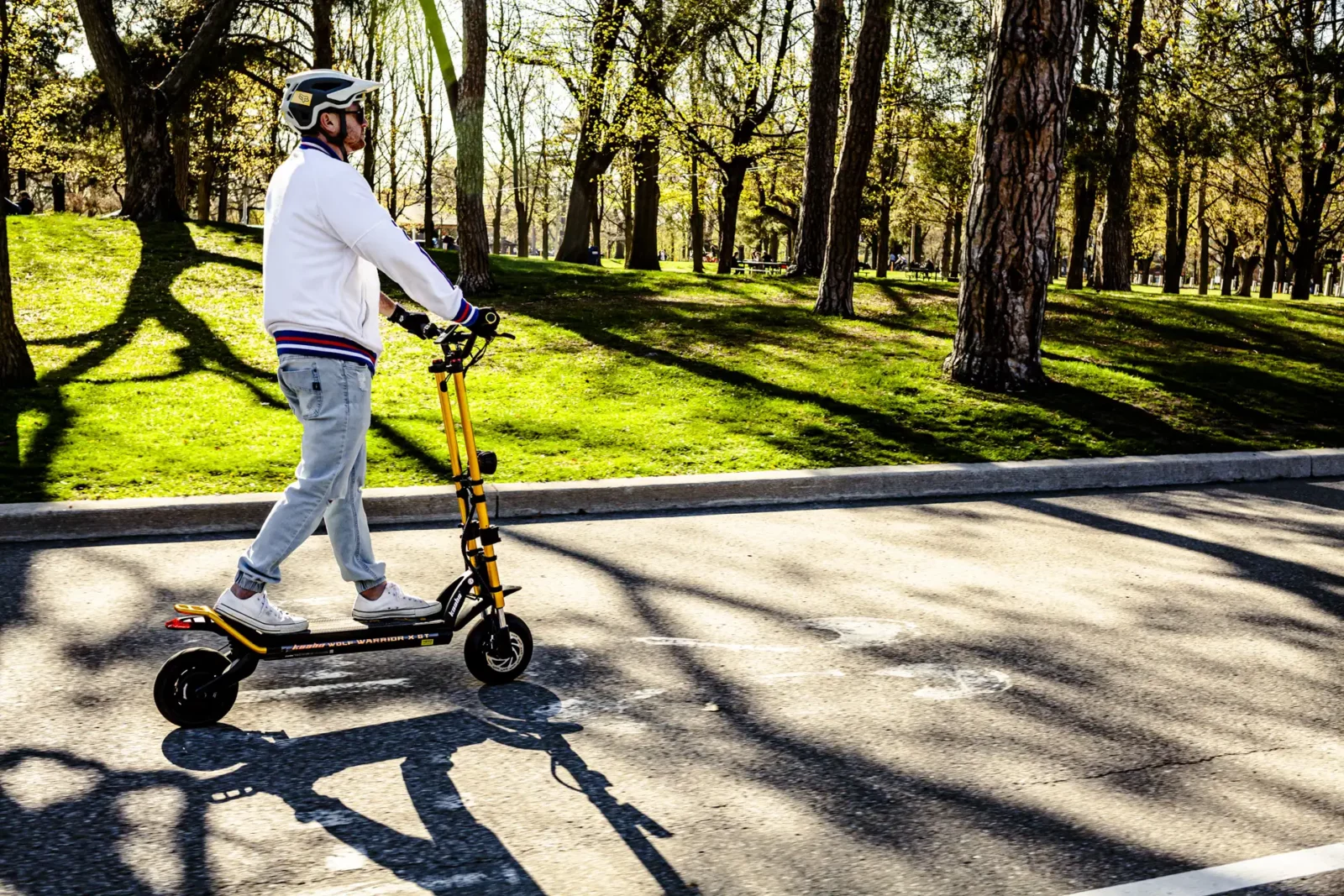 The Wolf X GT has 10” air-filled tires with a hybrid profile designed to work well on streets and off-road. With powerful dual motors, the X GT has impressive acceleration, and can climb hills easily at high speed. The Zoom hydraulic brakes provide ample braking power and are easier to use than mechanical brakes. With front and rear fenders, the Wolf Warrior X GT will keep you going and keep you clean.
