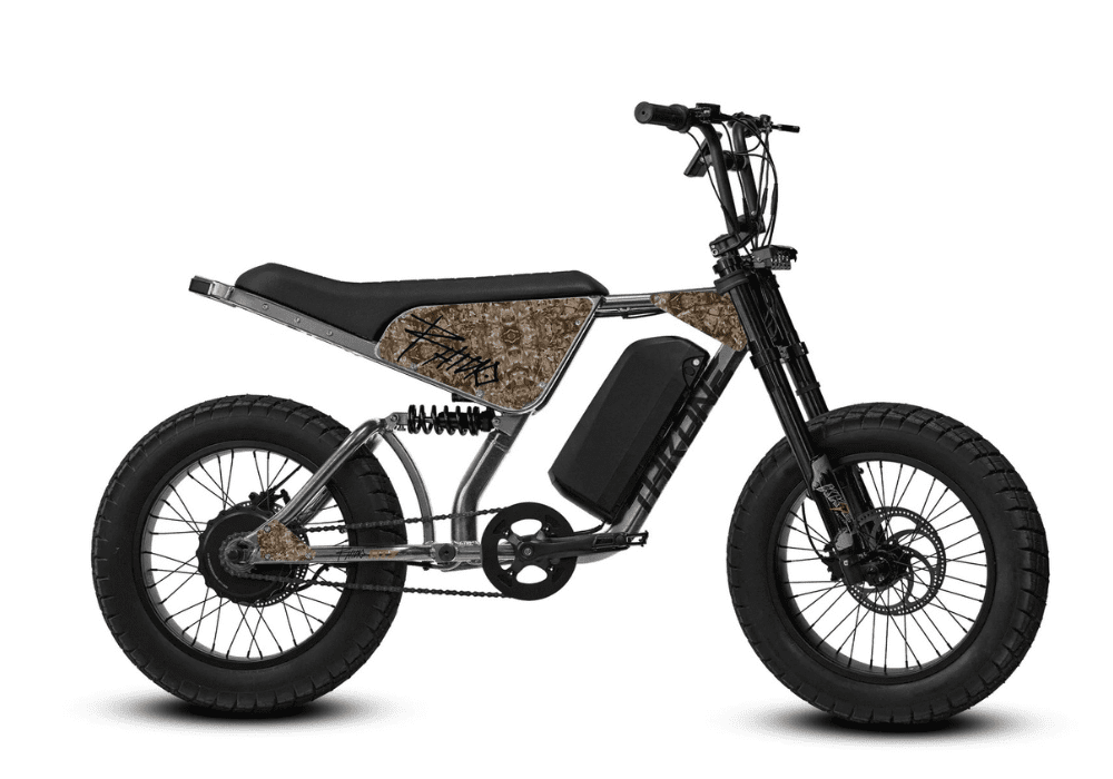 Powered by a 60V 1200W high-speed brushless motor pushing 120 N·m of torque, the Rhino – AT7 delivers instant pull and a limited speed of up to 50 km/hr. From launches to hill climbs, it hits with authority. The aluminum frame paired with KKE air rear suspension and a 20” oil-suspension front fork keeps the ride planted and controlled, soaking up impacts whether you’re bombing pavement or cutting through rough terrain. Fat 20×4.0 Vee Huntsman tires on wide 80mm double-wall rims give you unmatched grip, stability, and confidence at speed.